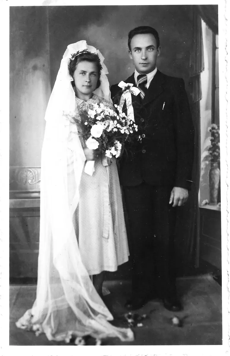 Ona ištekėjo 1943 metais. „Būčiau neskubėjusi, bet vokiečiai užrašė į darbus Dabužių durpynan, – pasakoja senolė. – Darbas juodas, sunkus, nuo jo išgelbėjo tik santuoka. Berniokų netrūko, bet širdin įkrito Stasys Varanavičius, batsiuvys, į kaimo gegužinę atvažiavęs su kitais „artistais“ iš Kavarsko. Pašokom, pakalbėjom... Atkakliai piršosi, tik tėvai nesidžiaugė: turtų jokių, kur gyvensim, kas iš to, kad nutekėsiu į miestelį?“