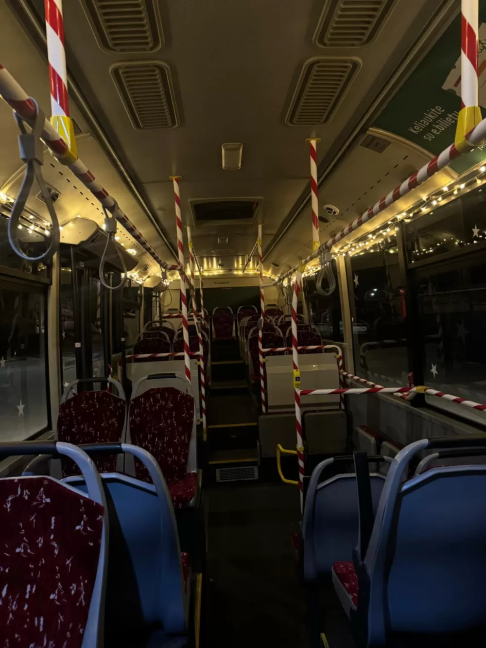 Šventinėmis lemputėmis išorėje ir viduje papuoštas vienas didelis maršrutinis autobusas po Dzūkijos sostinę važinėja nuo gruodžio pradžios, Kalėdinės eglutės įžiebimo Alytaus centre dienos.