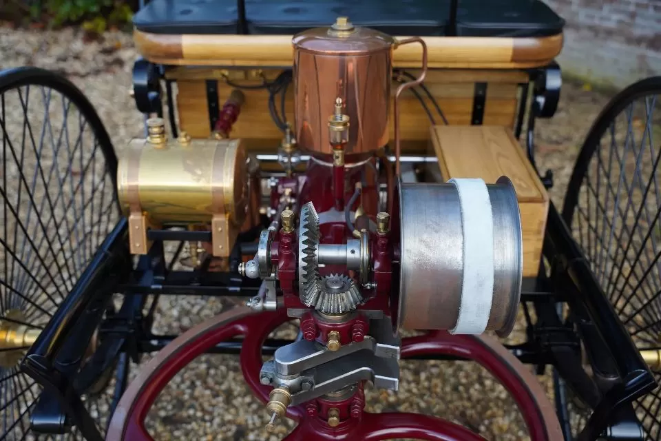 Pirmasis sėkmingas vidaus degimo variklis, tinkamas įmontuoti į transporto priemonę, buvo sukurtas maždaug 1885 m. Tai buvo vieno cilindro, keturių taktų benzininis variklis, dirbęs pagal Otto principą, su elektriniu uždegimu ir aušinamas vandeniu. Jo galia siekė vos 0,75 arklio galios (AG), tačiau pakankamai, kad triratė, lengvos konstrukcijos mašina pajudėtų iš vietos.